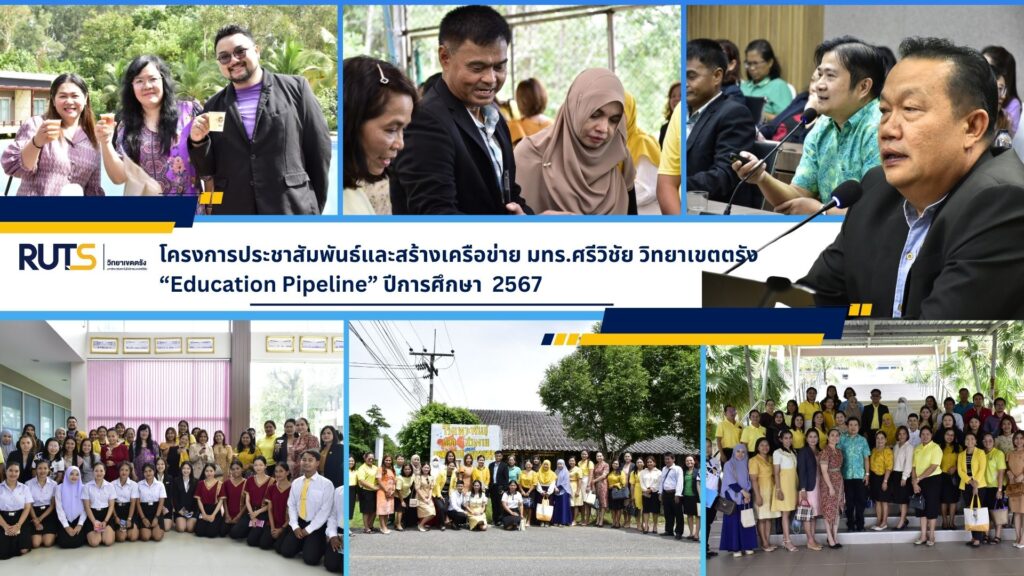 วันที่ 10 กรกฎาคม 2567 ที่ มหาวิทยาลัยเทคโนโลยีราชมงคลศรีวิชัย วิทยาเขตตรัง ณ ห้องประชุมสถาบันวิจัยและพัฒนา อาคารเฉลิมพระเกียรติ 80 พรรษา 5 ธันวาคม 2550 คณะครูอาจารย์ จากโรงเรียนในกลุ่มเครือข่ายสถานศึกษา ทั้งในและต่างจังหวัด เข้าร่วมโครงการประชาสัมพันธ์และสร้างเครือข่าย มทร.ศรีวิชัย วิทยาเขตตรัง “Education Pipeline” ปีการศึกษา 2567 จัดขึ้นเพื่อเป็นการประชาสัมพันธ์หลักสูตรการศึกษาต่อในปีการศึกษา 2568 โดยในช่วงภาคเช้ากิจกรรมนั่งรถลากชมบรรยากาศภายในมหาวิทยาลัยและเยี่ยมชมบรรยากาศการเรียนการสอนสังกัดวิทยาลัยการโรงแรมและการท่องเที่ยว ภายใต้การต้อนรับโดย ผศ.ฟ้าพิไล ทวีสินโสภา ผู้อำนวยการวิทยาลัยการโรงแรมและการท่องเที่ยว พร้อมด้วยผู้บริหาร บุคลากรและนักศึกษา นำเสนอข้อมูลการศึกษาต่อในแต่ละหลักสูตร พร้อมทั้งเยี่ยมชมห้องปฏิบัติการฝึกทักษะด้านอาชีพ จากนั้นได้เยี่ยมชมคณะวิทยาศาสตร์และเทคโนโลยีการประมง โดยมี ผศ.มาโนช ขำเจริญ คณบดีคณะวิทยาศาสตร์และเทคโนโลยีการประมง พร้อมด้วยผู้บริหาร และบุคลากร นำเยี่ยมชมบรรยากาศการเรียนการสอน ทั้งในด้านทฤษฎี และปฏิบัติในเรื่องของงานฟาร์ม เพื่อให้ผู้ที่ศึกษาต่อกับมหาวิทยาลัยสามารถนำความรู้ที่ได้ไปใช้ในการปฏิบัติงานได้อย่างถูกต้องและเกิดความเชี่ยวชาญ จากนั้นได้ไปยัง คณะวิศวกรรมศาสตร์และเทคโนโลยี ผศ.กิตติกร ขันแกล้ว คณบดีคณะวิศวกรรมศาสตร์และเทคโนโลยี พร้อมด้วยผู้บริหารและบุคลากร ร่วมให้การต้อนรับนำชมบรรยากาศการเรียนการสอนในห้องปฏิบัติการที่มีความพร้อมทางด้านเครื่องมืออุปกรณ์การเรียนรู้ในรายวิชาสาขาต่างๆ โดยในช่วงบ่าย ผศ.สิทธิโชค จันทร์ย่อง รองอธิการบดีประจำวิทยาเขตตรัง ได้กล่าวต้อนรับผู้เข้าร่วมโครงการ พร้อมด้วยคณะผู้บริหารจากทั้ง 3 สังกัดร่วมพูดคุยแนะนำหลักสูตรการศึกษาต่อในปีการศึกษา 2568 เพื่อเป็นข้อมูลและสร้างโอกาสทางการศึกษาต่อให้กับนักเรียนในกลุ่มโรงเรียนเครือข่ายได้เข้าศึกษาต่อยังมหาวิทยาลัยเทคโนโลยีราชมคลศรีวิชัย วิทยาเขตตรัง พร้อมทั้งการให้ความร่วมมือทางด้านการบริการวิชาการให้กับโรงเรียนในกลุ่มเครือข่ายอีกด้วย