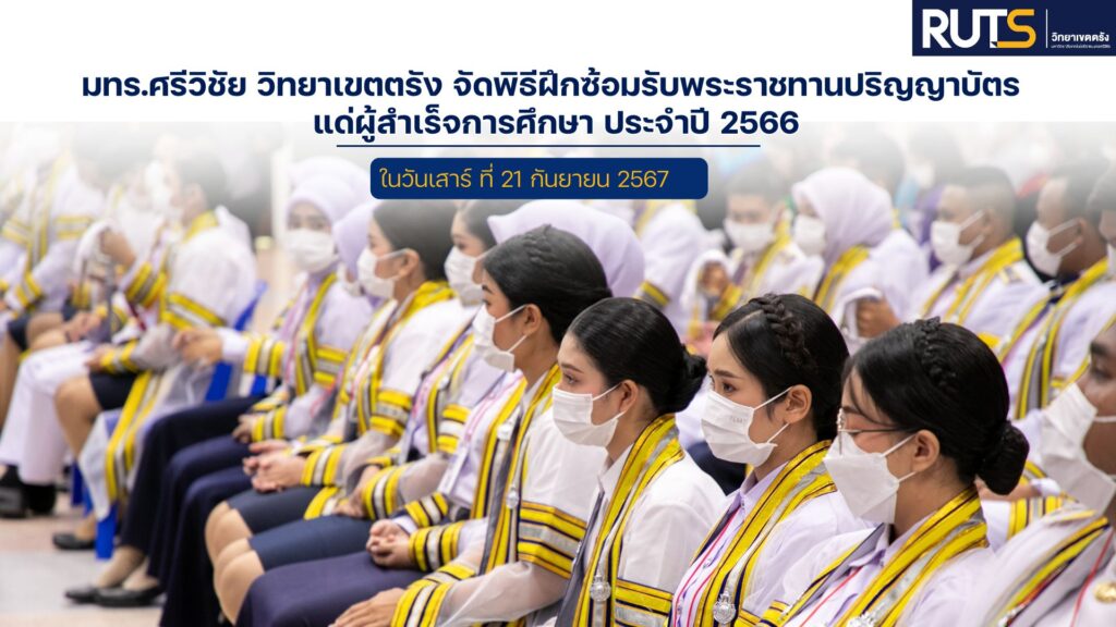 มหาวิทยาลัยเทคโนโลยีราชมงคลศรีวิชัย วิทยาเขตตรัง ได้กำหนดวันฝึกซ้อมย่อยการรับพระราชทานปริญญาบัตร ประจำปีการศึกษา 2566 ในวันเสาร์ที่ 21 กันยายน 2567 โดยกำหนดการช่วงเช้า บัณฑิตร่วมถ่ายภาพหมู่ โดยได้รับเกียรติจาก ศาสตราจารย์ ดร.สุวัจน์ ธัญรส อธิการบดีมหาวิทยาลัยเทคโนโลยีราชมงคลศรีวิชัย พร้อมคณะผู้บริหารและอาจารย์ในแต่ละสังกัดร่วมถ่ายภาพหมู่ ณ อาคารกีฬาราชมงคลตรัง จากนั้นเมื่อเวลา 09.00 น. ผู้ช่วยศาสตราจารย์สิทธิโชค จันทร์ย่อง รองอธิการบดีประจำวิทยาเขตตรัง กล่าวแสดงความยินดีและให้โอวาทแก่บัณฑิตที่เข้ารับการฝึกซ้อมรับพระราชทานปริญญาบัตร จำนวน 335 ราย ประกอบด้วย คณะวิทยาศาสตร์และเทคโนโลยีการประมง บัณฑิต จำนวน 80 ราย คณะวิศวกรรมศาสตร์และเทคโนโลยี บัณฑิต จำนวน 104 ราย วิทยาลัยการโรงแรมและการท่องเที่ยว บัณฑิต จำนวน 151 ราย ซึ่งบัณฑิตที่สำเร็จการศึกษาเข้ารับพระราชทานปริญญาบัตร ในวันที่ 26 กันยายน 2567 ณ ศูนย์ประชุมนานาชาติฉลองสิริราชสมบัติครบ 60 ปี อ.หาดใหญ่ จ.สงขลา