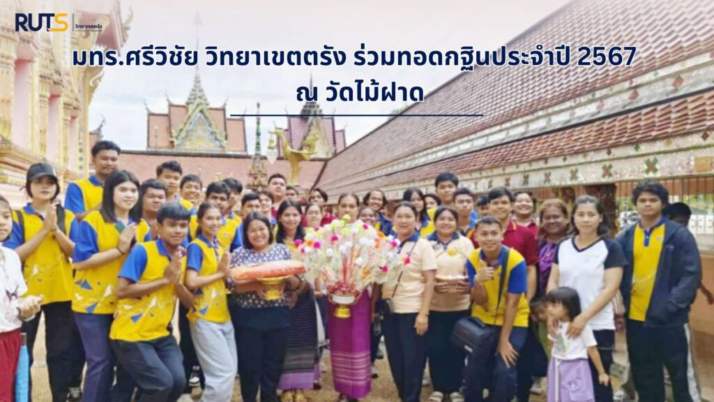 วันที่ 26 ตุลาคม 2567 มทร.ศรีวิชัย วิทยาเขตตรัง นำโดย ผศ.สิทธิโชค จันทร์ย่อง รองอธิการบดีประจำวิทยาเขตตรัง พร้อมด้วยคณะผู้บริหารบุคลากรนักศึกษา และประชาชนทั่วไป ร่วมกิจกรรมทอดกฐินสามัคคีประจำปี 2567 ณ วัดไม้ฝาด โดยแผนกกิจการนักศึกษา งานบริการการศึกษา สำนักงานวิทยาเขตตรัง ได้เชิญชวนบุคลากร และนักศึกษาร่วมทำบุญสมทบทุน จัดทำต้นกฐินพร้อมเครื่องกฐิน เพื่อสมทบร่วมทำบุญดังกล่าว อีกทั้งเป็นการส่งเสริมการมีส่วนร่วมพัฒนาและทำนุบำรุงพุทธศาสนาสืบสานประเพณีศิลปวัฒนธรรม โดยเมื่อวันที่ 25 ตุลาคม 2567 ที่ผ่านมาได้เข้าร่วมพิธีสมโภชองค์กฐิน ณ วัดไม้ฝาด ซึ่งการร่วมทำบุญร่วมทอดกฐินสามัคคี ดังกล่าวจัดขึ้นเพื่อนำปัจจัย สร้างศาลาบำเพ็ญกุศลศพ ณ วัดไม้ฝาด โดยมี นายพิพัฒน์ รัฐกิจประการ รัฐมนตรีว่าการกระทรวงแรงงาน ได้เป็นประธานและเจ้าภาพทอดกฐินในครั้งนี้ อีกด้วย