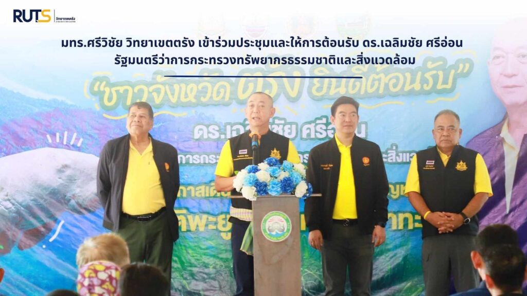 วันนี้ 7 ธันวาคม 2567 ณ โรงเรียนบาตูปูเต๊ะ (เกาะลิบง) อ.กันตัง จ.ตรัง ผศ.ดร.วิกิจ ผินรับ ผู้ช่วยอธิการบดีประจำวิทยาเขตตรัง ผศ.ดร.ประเสริฐ ทองหนูกนุ้ย ผู้อำนวยการสถาบันทรัพยากรธรรมชาติและสิ่งแวดล้อม มทร.ศรีวิชัย พร้อมด้วยผู้บริหาร หัวหน้าส่วนราชการ และเครือข่าย เข้าร่วมการประชุม และให้การต้อนรับ ดร.เฉลิมชัย ศรีอ่อน รัฐมนตรีว่าการกระทรวงทรัพยากรธรรมชาติและสิ่งแวดล้อม พร้อมด้วยนายจตุพร บุรุษพัฒน์ ปลัดกระทรวงทรัพยากรธรรมชาติและสิ่งแวดล้อม ดร.ปิ่นสักก์ สุรัสวดี อธิบดีกรมทรัพยากรทางทะเลและชายฝั่ง นายอรรถพล เจริญชันษา อธิบดีกรมอุทยานแห่งชาติ สัตว์ป่า และพันธุ์พืช และนายทรงกลด สว่างวงศ์ ผู้ว่าราชการจังหวัดตรัง พันจ่าโท อนันต์ บุญสำราญ รองผู้ว่าราชการจังหวัดตรัง และนายสุวิทย์ สุริยะวงศ์ รองผู้ว่าราชการจังหวัดกระบี่ เพื่อเข้าพบชาบ้าน ตำบลเกาะลิบง เร่งแก้ปัญหาพะยูน และฟื้นฟูแหล่งหญ้าทะเล จากสถานการณ์การเปลี่ยนแปลงสภาพภูมิอากาศ ทำให้เกิดสถานการณ์หญ้าทะเลเสื่อมโทรมในพื้นที่ฝั่งทะเลอันดามัน ซึ่งเป็นแหล่งหญ้าทะเลที่สำคัญและเป็นแหล่งอาศัยหลักของพะยูนในประเทศไทย โดยเฉพาะจังหวัดตรัง ซึ่งถือเป็นเมืองหลวงของพะยูน ส่งผลกระทบทำให้พะยูนเกิดภาวะขาดแคลนอาหารและต้องอพยพไปยังพื้นที่ใหม่ กระทรวงทรัพยากรธรรมชาติและสิ่งแวดล้อม (ทส.) ในฐานะหน่วยงานรับผิดชอบดำเนินการแก้ไขปัญหาดังกล่าว โดยได้กำหนด 4 มาตรการ เพื่อแก้ไขปัญหาวิกฤติพะยูนเกยตื้นและหญ้าทะเลเสื่อมโทรม ประกอบด้วย 1.เร่งเพิ่มประสิทธิภาพการสำรวจประชากรพะยูนด้วยอากาศยานไร้คนขับชนิดปีกตรึง (Fixed-wings Unmanned Aerial Vehicle: Fixed-wings UAV) และแบบสำรวจการพบเห็นพะยูนให้เป็นปัจจุบัน เพื่อให้ทราบจำนวน พื้นที่การแพร่กระจายที่เปลี่ยนแปลงไป รวมถึงสำรวจสุขภาพของพะยูนแต่ละตัวว่ามีความสมบูรณ์ หรือมีอาการป่วย เพื่อหามาตรการช่วยเหลือไม่ให้พะยูนตายจากการขาดอาหาร 2.หาแนวทางประกาศพื้นที่คุ้มครองและบังคับใช้มาตรการ ซึ่งจะเป็นการป้องกันอันตราย จากการประกอบกิจกรรมในทะเล ที่อาจจะส่งผลกระทบต่อพะยูนที่เข้ามาอาศัย จะร่วมกับหน่วยงานที่เกี่ยวข้อง เช่น การออกประกาศพื้นที่คุ้มครองพะยูนชั่วคราว ซึ่งคาดว่าจะประกาศ 3 จุด ประกอบด้วย หน้าหาดราไวย์ อ่าวบางโรง และอ่าวบางขวัญ ซึ่งเป็นจุดที่พบพะยูนจำนวนมาก โดยจะต้องมีการหารือในรายละเอียดกับภาคส่วนต่างๆ อีกครั้ง ก่อนที่จะมีการประกาศออกไป 3.ค้นหาและช่วยเหลือพะยูนที่ยังมีชีวิตและอ่อนแอ โดยเร่งฟื้นฟูแหล่งอาหาร ซึ่งเป็นปัจจัยหลักที่ทำให้พะย
