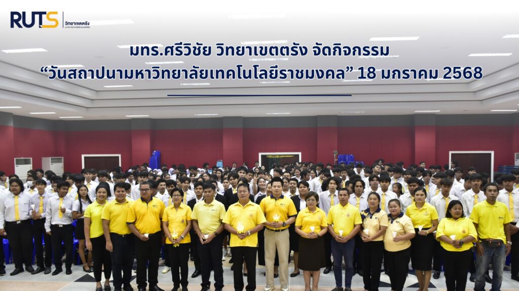 ในวันนี้ วันเสาร์ที่ 18 มกราคม 2568 เมื่อเวลา 17.30 น. ที่ มหาวิทยาลัยเทคโนโลยีราชมงคลศรีวิชัย วิทยาเขตตรัง จัดกิจกรรมในโอกาสวันคล้ายวันสถาปนามหาวิทยาลัยเทคโนโลยีราชมงคล ภายใต้การจัดโครงการปลูกฝังจิตสำนึกรักสถาบันและแสงแห่งปัญญา ณ หอประชุมพันตรีเพียร จรรย์สืบศรี