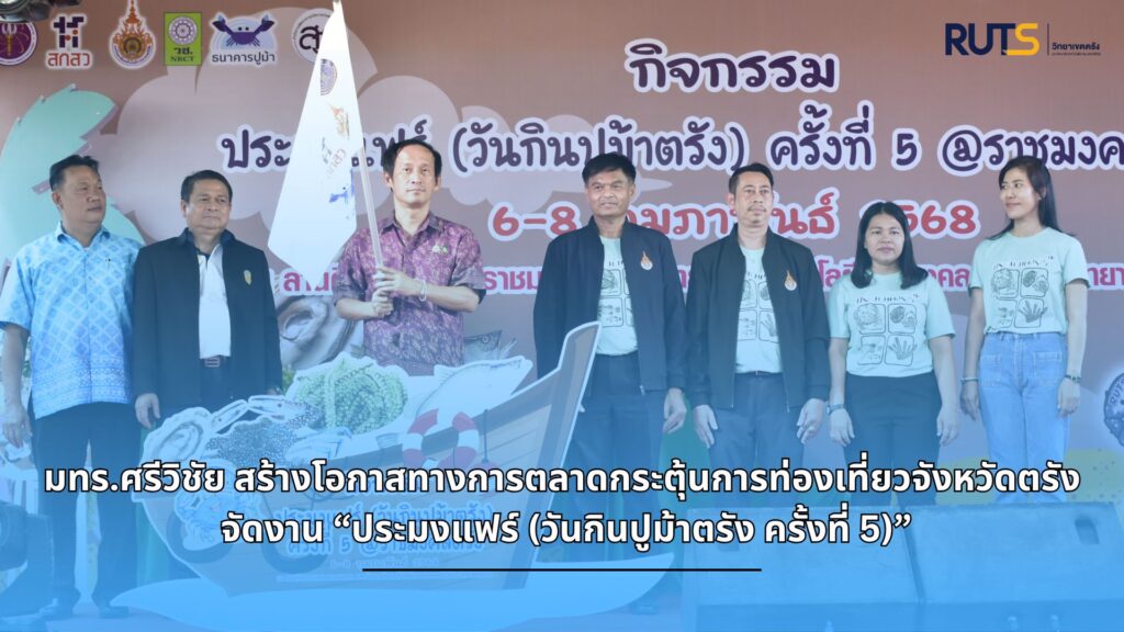 วันที่ 6 กุมภาพันธ์ 2568 ที่มหาวิทยาลัยเทคโนโลยีราชมงคลศรีวิชัย วิทยาเขตตรัง ณ ลานกิจกรรมหาดราชมงคลตรัง คณะวิทยาศาสตร์และเทคโนโลยีการประมง มหาวิทยาลัยเทคโนโลยีราชมงคลศรีวิชัย ร่วมกับ สำนักงานการวิจัยแห่งชาติ (วช.) และสำนักงานพัฒนาการวิจัยการเกษตร (สวก.) โครงการขยายผลธนาคารปูม้าตรัง กระบี่ โครงการปลาในกระชัง โครงการหอยนางรม และโครงการสาหร่ายพวงองุ่นศูนย์เรียนรู้ปูม้าตรัง และเครือข่ายมหาวิทยาลัยเทคโนโลยีราชมงคลศรีวิชัย จัดงาน“ประมงแฟร์ (วันกินปูม้าตรัง ครั้งที่ 5)” ระหว่างวันที่ 6-8 กุมภาพันธ์ 2568 นายทรงกลด สว่างวงศ์ ผู้ว่าราชการจังหวัดตรัง ให้เกียรติเป็นประธานในพิธีเปิด พร้อมด้วย ศาสตราจารย์ ดร.สุวัจน์ ธัญรส อธิการบดีมหาวิทยาลัยเทคโนโลยีราชมงคลศรีวิชัย มอบโล่เกียรติคุณและเกียรติบัตรให้กับชุมชนต้นแบบ สมาคมประมงพื้นบ้านจังหวัดตรังและกระบี่ โดยมีคณะผู้บริหาร มทร.ศรีวิชัย เข้าร่วมงาน นำโดย ผศ.สิทธิโชค จันทร์ย่อง รองอธิการบดีประจำวิทยาเขตตรัง ผศ.มาโนช ขำเจริญ คณบดีคณะวิทยาศาสตร์และเทคโนโลยีการประมง ผู้บริหาร บุคลากร นักศึกษา ประชาชนทั่วไป และชุมชนประมงเครือข่ายชายฝั่งจังหวัดตรังและกระบี่ เพื่อสนับสนุนกิจกรรมการจำหน่ายสินค้าและผลิตภัณฑ์ประมงแปรรูปจากชุมชนเครือข่ายสร้างโอกาสทางการตลาดและส่งเสริมการท่องเที่ยวจังหวัดตรังก่อให้เกิดรายได้สู่ชุมชน