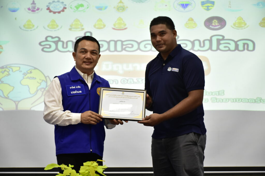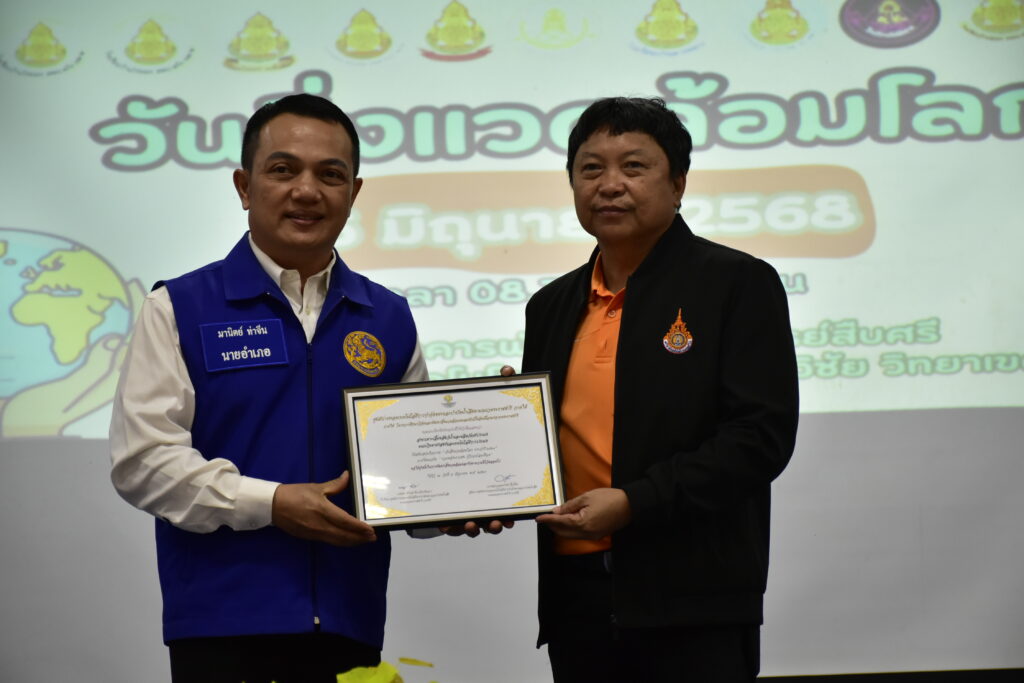 ด้าน มานิตย์ ท่าจีน นายอำเภอสิเกา ประธานในพิธี กล่าวว่า วันสิ่งแวดล้อมโลกนับเป็นวันสำคัญ ที่เราจะต้องให้ความสนใจเป็นอย่างมาก ทุกคนสามารถช่วยได้โดยเริ่มต้นจากจุดเล็กๆ เพื่อไม่ให้ส่งผลกระทบต่อภาวะโลกร้อน โดยการปรับพฤติกรรม ลดการสร้างหรือทิ้งขยะ คัดแยกขยะจากในครัวเรือน รวมถึงการเลือกใช้วัสดุที่สามารถนำกลับไปใช้ซ้ำ ทั้งนี้ปัญหาโลกเดือดไม่ได้มีสาเหตุมาจากขยะเพียงอย่างเดียวแต่ยังเกิดจากการใช้พลังงานฟอสซิล เช่น เชื้อเพลิงที่เป็นถ่านหิน น้ำมัน และก๊าซธรรมชาติ เพื่อลดการทดแทนการใช้พลังงานดังกล่าวโดยการเปลี่ยนพื้นที่ว่างเป็นพื้นที่สีเขียว ช่วยกันปลูกต้นไม้ให้มากขึ้นและไม่ตัดไม้ทำลายป่า นอกจากนี้ยังได้มีการแจกพันธ์ไม้ให้นำกลับไปปลูกและช่วยกันดูแล ดูดซับก๊าซคาร์บอนไดออกไซด์ ลดความร้อนของโลก ตามคำขวัญของวันสิ่งแวดล้อมโลกในปีนี้ 5 มิถุนายน 2568″ “Beat Plastic Pollution: Ending global plastic pollution” “ใช้พลาสติกอย่างเข้าใจ เปลี่ยนประเทศไทยให้ยั่งยืน” ร่วมกันสร้างสรรค์อนาคตประเทศไทยไปด้วยกัน พร้อมกับการปลูกฝังให้เยาวชน เป็นคนดีเกิดการตระหนักรู้ มีวินัย และ มีความรับผิดชอบต่อสังคม