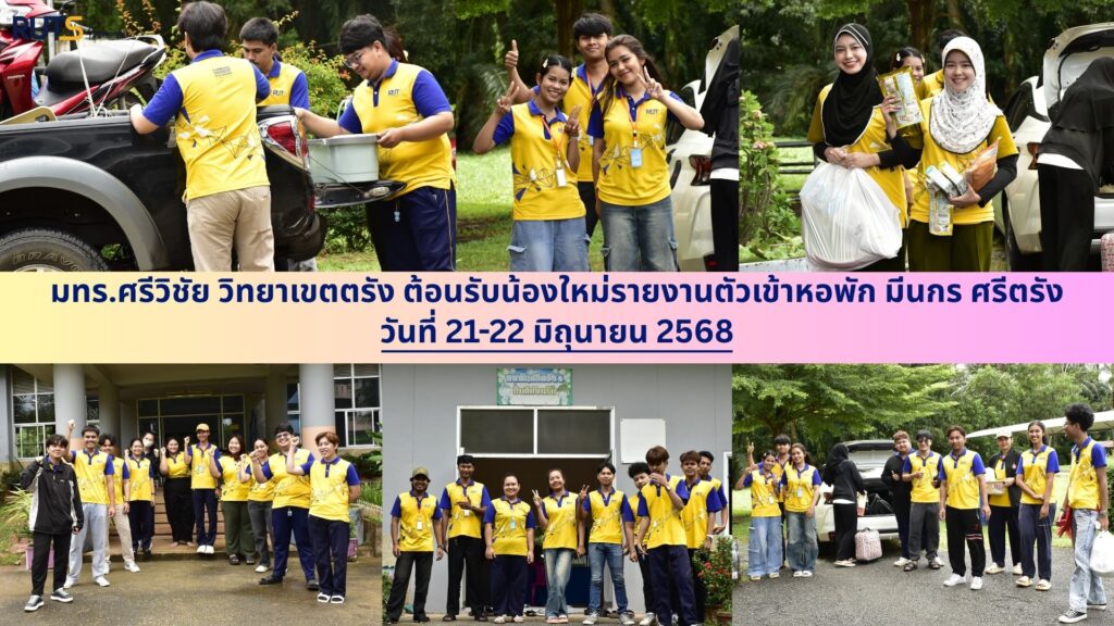 วันที่ 21-22 มิถุนายน 2568 อาจารย์ บุคลากร และนักศึกษา มทร.ศรีวิชัย วิทยาเขตตรัง ร่วมให้การต้อนรับ ผู้ปกครองและนักศึกษาชั้นปีที่ 1 ที่เดินทางมารายงานตัวเข้าหอพักนักศึกษา มหาวิทยาลัยเทคโนโลยีราชมงคลศรีวิชัย วิทยาเขตตรัง (หอพักชายมีนกร,หอพักหญิงศรีตรัง) โดยมีนักศึกษารุ่นพี่ จากคณะ และวิทยาลัย มารอรับน้องๆ ปีหนึ่งพร้อมช่วยบริการขนย้ายสัมภาระให้กับน้องนักศึกษาใหม่ สร้างความประทับใจให้กับผู้ปกครอง อีกทั้งยังเป็นการเปิดโอกาสให้น้องๆได้ทำความรู้จักกับรุ่นพี่ สร้างความรักสามัคคีได้เป็นอย่างดี