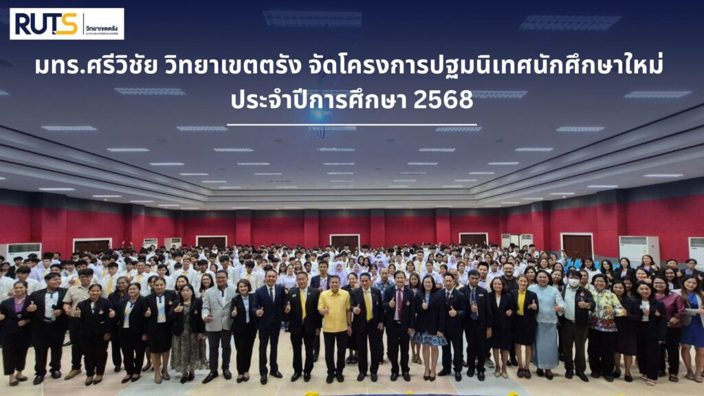 ศาสตราจารย์ ดร.สุวัจน์ ธัญรส อธิการบดีมหาวิทยาลัยเทคโนโลยีราชมงคลศรีวิชัย ผศ.ปิยะ ประสงค์จันทร์ รองอธิการบดี ผศ.สิทธิโชค จันทร์ย่อง พร้อมด้วยคณะผู้บริหาร จากทั้ง 3 สังกัด กล่าวต้อนรับและให้โอวาท แก่นักศึกษาใหม่ ประจำปีการศึกษา 2568