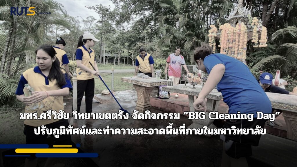 เมื่อวันที่ 29-30 ตุลาคม 2568 มหาวิทยาลัยเทคโนโลยีราชมงคลศรีวิชัย วิทยาเขตตรัง จัดกิจกรรม “BIG Cleaning Day” โดยมีนักศึกษาเข้าร่วมกันปรับภูมิทัศน์และทำความสะอาดพื้นที่ภายในมหาวิทยาลัย เพื่อสร้างบรรยากาศที่สะอาด ร่มรื่น และเอื้อต่อการเรียนรู้ โดยกิจกรรมเริ่มต้นด้วยการประชุมเตรียมความพร้อมในเวลา 09.00 น. ณ อาคารเฉลิมพระเกียรติ ชั้น 1 ก่อนดำเนินการทำความสะอาดและปรับปรุงพื้นที่ในจุดต่าง ๆ ของวิทยาเขต โดยในวันที่ 29 ตุลาคม 2568 ได้ดำเนินการในพื้นที่ อาคารเฉลิมพระเกียรติ อาคารสำนักงานวิทยาเขตตรัง และอาคารวิทยบริการ จากนั้นในวันที่ 30 ตุลาคม 2568 มีกำหนดดำเนินการต่อเนื่องในพื้นที่ อาคารกีฬาราชมงคลตรัง ซึ่งกิจกรรมดังกล่าวจัดขึ้นเพื่อส่งเสริมให้นักศึกษาและบุคลากรมีจิตสำนึกในการรักษาความสะอาด ส่งเสริมการมีส่วนร่วมในการพัฒนาสภาพแวดล้อมของมหาวิทยาลัยให้มีความสวยงาม สร้างความสามัคคีและการมีจิตสาธารณะ