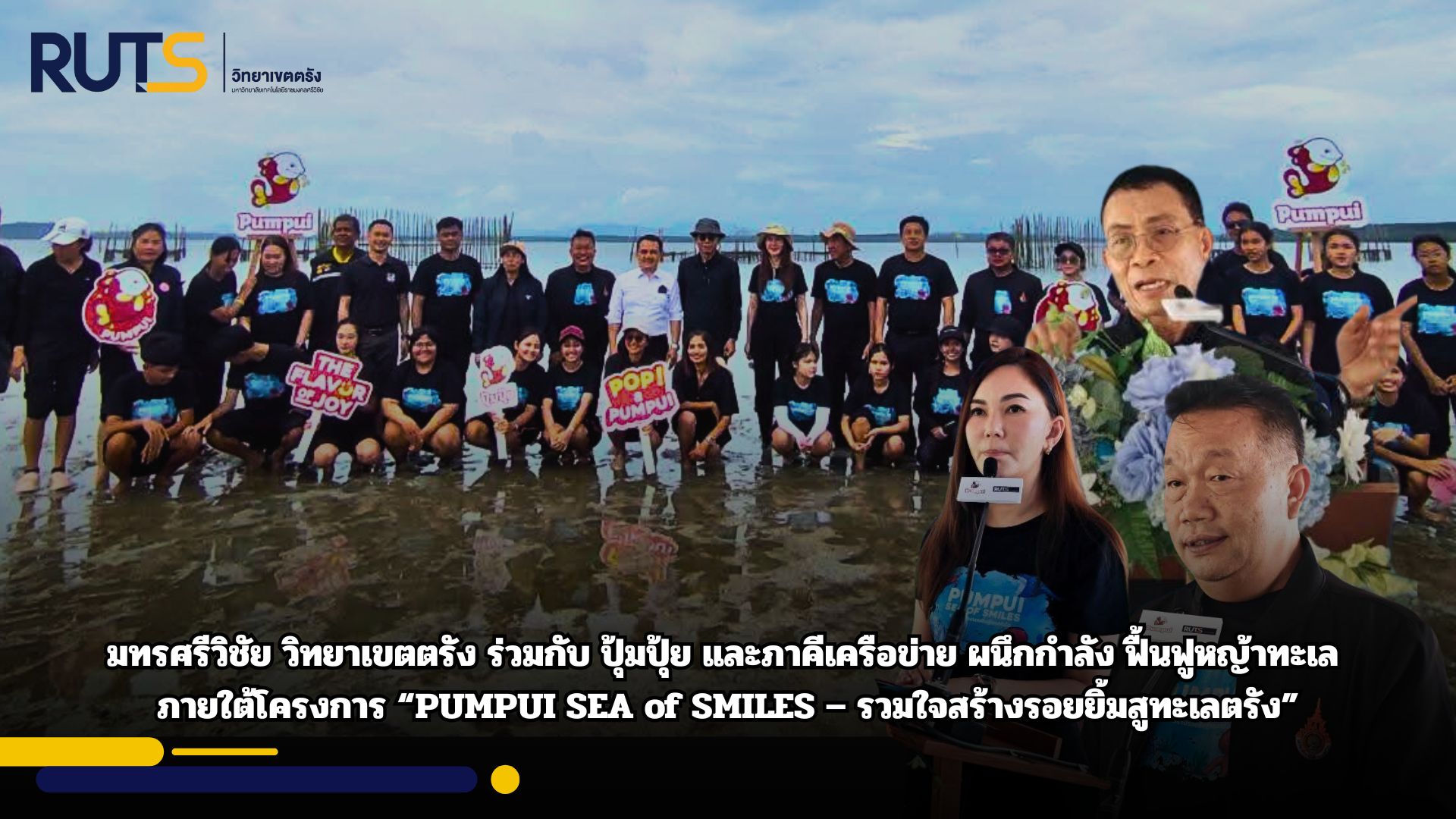 จากนั้น คุณปวิตา โตทับเที่ยง ประธานเจ้าหน้าที่บริหารสายงานความยั่งยืนและสื่อสารองค์กร บริษัท ผลิตภัณฑ์อาหารกว้างไพศาล จำกัด (มหาชน) กล่าวว่า โครง “PUMPUI SEA of SMILES – รวมใจสร้างรอยยิ้มสูทะเลตรัง”มีเป้าหมายเพื่อสร้างความตระหนักรู้ด้านการอนุรักษ์ทรัพยากรทางทะเลและชายฝั่ง พร้อมพัฒนา “แหล่งเรียนรู้ต้นแบบสิ่งแวดล้อม” และส่งเสริมความร่วมมือระหว่างภาคเอกชน ภาครัฐ สถาบันการศึกษา และชุมชน เพื่อฟื้นฟูทะเลตรังให้คงความอุดมสมบูรณ์อย่างยั่งยืน ได้จัดให้มีกิจกรรมปล่อยพันธุ์กุ้งแชบ๊วยจำนวน 100,000 ตัว ปล่อยแม่ปูม้ามีไข่จำนวน 50 ตัว เพื่อเพิ่มการขยายพันธุ์ในธรรมชาติ มอบอุปกรณ์การเรียนให้เยาวชนในพื้นที่ และการบรรยายความรู้ด้านการอนุรักษ์ทรัพยากรทางทะเล โดย อาจารย์ และคณะทำงาน นักวิจัย จากคณะวิทยาศาสตร์และเทคโนโลยีการประมง มหาวิทยาลัยเทคโนโลยี ราชมงคลศรีวิชัย วิทยาเขตตรัง พร้อมชี้แจงผลการวิจัยเบื้องต้น พบว่าการฟื้นฟูแหล่งหญ้าทะเลในเขตกั้นคอกฟื้นตัวเพิ่มขึ้นกว่า 70% ภายในระยะเวลาไม่กี่เดือน โดยแบ่งการวิจัยการกั้นคอกหญ้าทะเล ออกเป็น 2 รูปแบบ คือรูปทรงสี่เหลี่ยม และรูปวงกลม ทั้งนี้ ทีมวิจัย ของมหาวิทยาลัย ได้อยู่ในระหว่างการศึกษาว่ารูปแบบใดช่วยลดการตกตะกอนของโคลน และส่งเสริมการเจริญเติบโตของหญ้าทะเลได้ดีที่สุด เพื่อใช้เป็นแนวทางฟื้นฟูระบบนิเวศทางทะเลตรังในระยะยาวได้ต่อไป ซึ่งการมีส่วนร่วมในการดำเนินโครงการในครั้งนี้ เป็นการแสดงให้เห็นถึงการร่วมกันผนึกกำลังจากทุกภาคส่วน เพื่อการฟื้นฟูและอนุรักษ์ระบบนิเวศหญ้าทะเลบริเวณชายฝั่งจังหวัดตรัง ตลอดจนส่งเสริมการเรียนรู้และปลูกจิตสำนึกด้านการอนุรักษ์ทรัพยากรทางทะเลให้แก่เยาวชน นักศึกษา และชุมชนชายฝั่ง