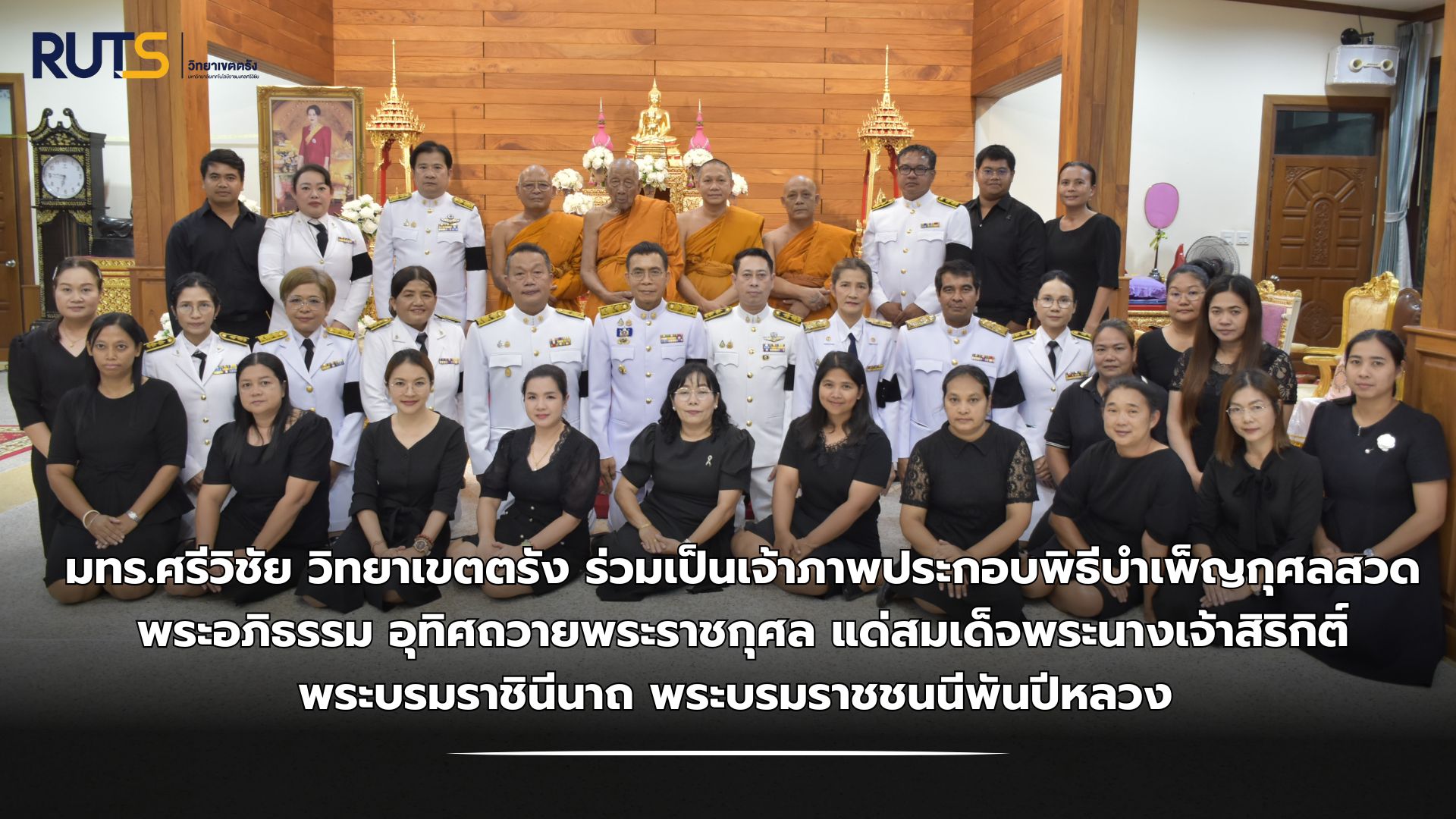 มหาวิทยาลัยเทคโนโลยีราชมงคลศรีวิชัย วิทยาเขตตรัง ร่วมกับ มหาวิทยาลัยสงขลานครินทร์ วิทยาเขตตรัง มหาวิทยาลัยรามคำแหงจังหวัดตรัง มหาวิทยาลัยสวนดุสิต ศูนย์การศึกษานอกที่ตั้ง ตรัง และมหาวิทยาลัยราชภัฏภูเก็ตจังหวัดตรัง ผศ.สิทธิโชค จันทร์ย่อง รองอธิการบดีประจำวิทยาเขตตรัง พร้อมด้วยคณะผู้บริหาร และบุคลากร มทร.ศรีวิชัย วิทยาเขตตรั เข้าร่วมประกอบพิธีบำเพ็ญกุศลสวดพระอภิธรรม อุทิศถวายพระราชกุศล แด่สมเด็จพระนางเจ้าสิริกิติ์ พระบรมราชินีนาถ พระบรมราชชนนีพันปีหลวง พร้อมด้วย พสกนิกรทุกหมู่เหล่า เข้าร่วมพิธี เพื่อแสดงความจงรักภักดีและน้อมรำลึกในพระมหากรุณาธิคุณ โดยมี นายสกุล ดำรงเกียรติกุล รองผู้ว่าราชการจังหวัดตรัง เป็นประธานฝ่ายฆราวาส พระมงคลวชิราคม เจ้าอาวาสวัดนิคมประทีป เป็นประธานสงฆ์ พร้อมด้วย คณะสงฆ์