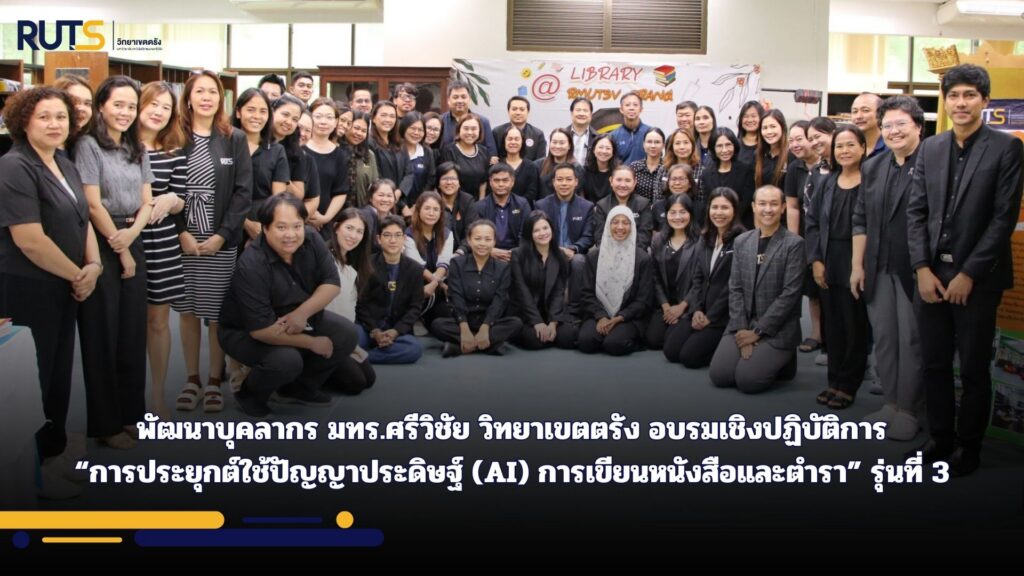 เมื่อวันที่ 20 – 21 พฤศจิกายน 2568 สำนักวิทยบริการและเทคโนโลยีสารสนเทศ มหาวิทยาลัยเทคโนโลยีราชมงคลศรีวิชัย จัดโครงการอบรมเชิงปฏิบัติการ “การประยุกต์ใช้ปัญญาประดิษฐ์ (AI) ในการเขียนหนังสือและตำรา” รุ่นที่ 3 ณ อาคารวิทยบริการ มทร.ศรีวิชัย วิทยาเขตตรัง โดยมีคณาจารย์ จากทุกหน่วยภายในมหาวิทยาลัยเข้าร่วมอย่างคับคั่ง
