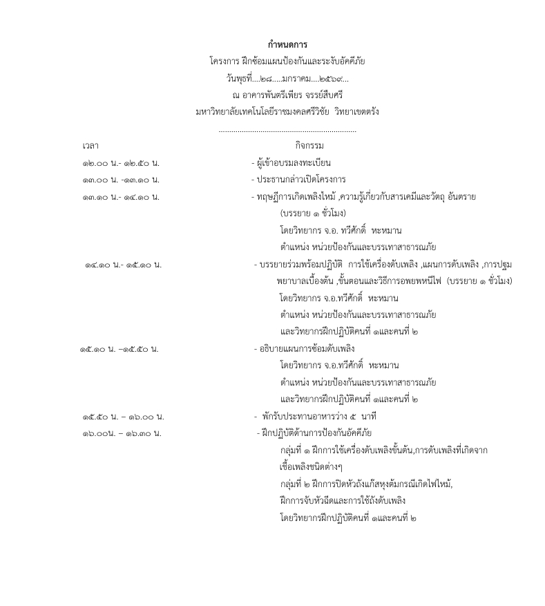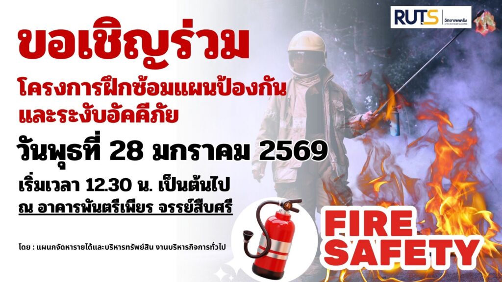 ขอเชิญบุคลากรและนักศึกษา เข้าร่วมโครงการ “ฝึกซ้อมแผนป้องกันและระงับอัคคีภัย”