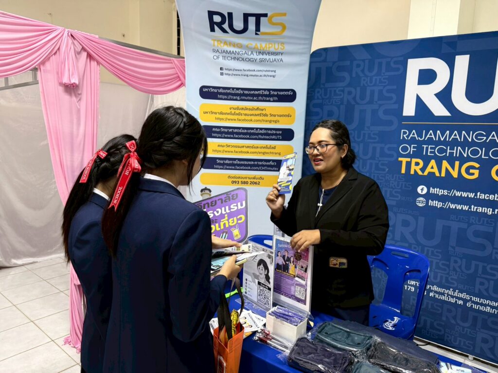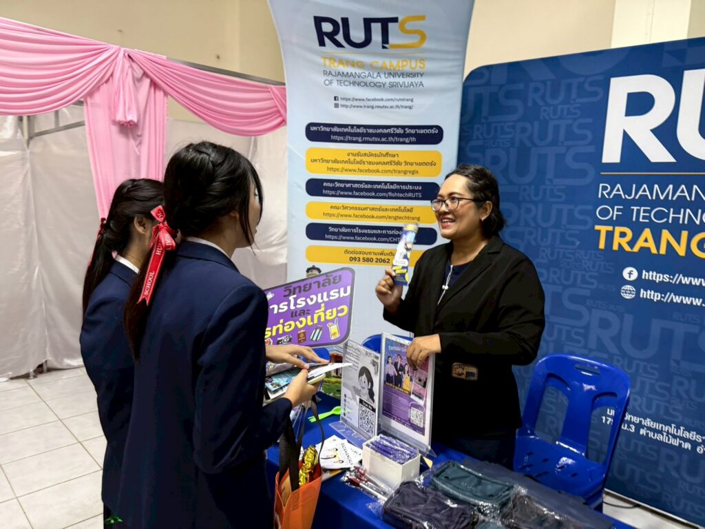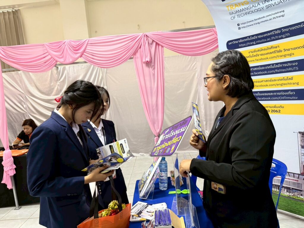 วันที่ 13 กุมภาพันธ์ 2569 แผนกแนะแนวการศึกษาและอาชีพ มทร.ศรีวิชัย วิทยาเขตตรัง และนางสาวกรวิษา ร่มรื่น ตัวแทนของวิทยาลัยการโรงแรมและการท่องเที่ยว เป็นตัวแทนของ มทร.ศรีวิชัย วิทยาเขตตรัง เข้าร่วมงาน HY OPEN HOUSE 2026 เปิดบ้านวิชาการ ณ โรงเรียนห้วยยอด จังหวัดตรัง เพื่อประชาสัมพันธ์หลักสูตรการเรียนการสอน ให้แก่นักเรียนชั้นมัธยมศึกษาปีที่6 โรงเรียนห้วยยอด และโรงเรียนอื่นๆ ที่เข้าร่วม