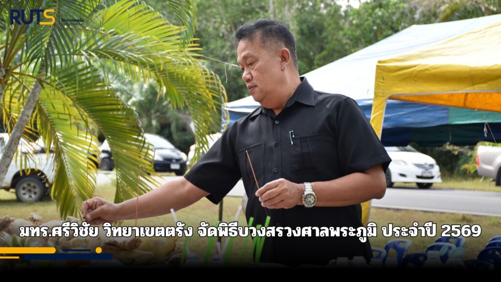 วันพฤหัสบดีที่ 19 กุมภาพันธ์ 2569 เวลา 09.00 น. มหาวิทยาลัยเทคโนโลยีราชมงคลศรีวิชัย วิทยาเขตตรัง นำโดย ผู้ช่วยศาสตราจารย์สิทธิโชค จันทร์ย่อง รองอธิการบดีประจำวิทยาเขตตรัง พร้อมด้วยผู้บริหาร คณาจารย์ และบุคลากร ร่วมประกอบพิธีบวงสรวงศาลพระภูมิเจ้าที่ เพื่อความเป็นสิริมงคลแก่หน่วยงานและบุคลากร ซึ่งตามความเชื่อการประกอบพิธีไหว้พระภูมิ มีความเชื่อว่า พระภูมิจะช่วยดูแลปกปักรักษาบ้านเรือนและผู้อยู่อาศัย ให้มีความร่มเย็นเป็นสุข มีความรักความสามัคคี ป้องกันและขจัดสิ่งไม่ดีที่อาจเข้ามาสู่บ้าน อีกทั้งยังเสริมความเจริญรุ่งเรืองและสุขภาพร่างกายให้แข็งแรง ปราศจากโรคภัยไข้เจ็บ