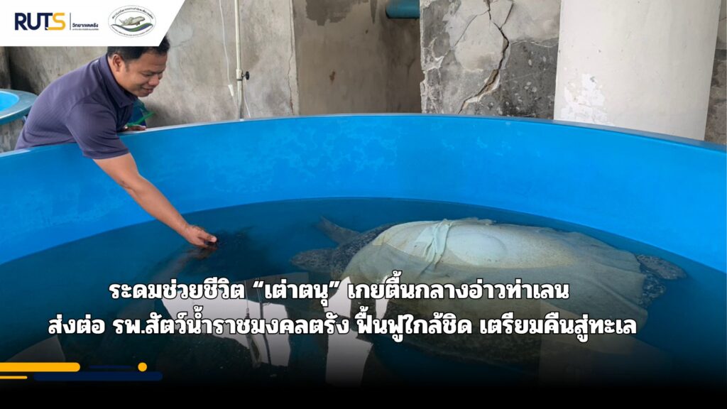สถาบันทรัพยากรธรรมชาติและสิ่งแวดล้อม มหาวิทยาลัยเทคโนโลยีราชมงคลศรีวิชัย วิทยาเขตตรัง ร่วมกับ ศูนย์วิจัยทรัพยากรทางทะเลและชายฝั่งทะเลอันดามันตอนล่าง (ศวอล.) ให้การช่วยเหลือเต่าตนุเพศเมียวัยโตเต็มวัย หลังพบลอยตัวผิดปกติกลางทะเลบริเวณอ่าวท่าเลน จังหวัดกระบี่ ก่อนเร่งเคลื่อนย้ายเข้าสู่การดูแลรักษา ณ โรงพยาบาลสัตว์น้ำราชมงคลตรัง เพื่อฟื้นฟูสุขภาพอย่างใกล้ชิด และเตรียมความพร้อมปล่อยคืนสู่ธรรมชาติ