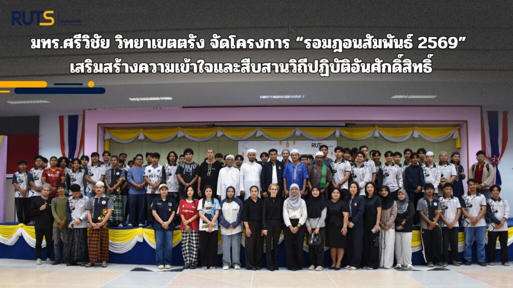 วันที่ 25 กุมภาพันธ์ 2569 มหาวิทยาลัยเทคโนโลยีราชมงคลศรีวิชัย วิทยาเขตตรัง เดินหน้าส่งเสริมคุณธรรมและอัตลักษณ์ทางศาสนา จัดโครงการ “รอมฎอนสัมพันธ์ ประจำปี 2569” เพื่อเตรียมความพร้อมและสร้างความตระหนักถึงความสำคัญของเดือนรอมฎอน ณ ห้องประชุมพันตรีเพียร จรรย์สืบศรี โดยมี ผศ.มาโนช ขำเจริญ คณบดีคณะวิทยาศาสตร์และเทคโนโลยีการประมง ให้เกียรติเป็นประธานในพิธี