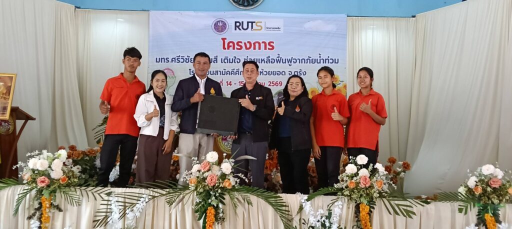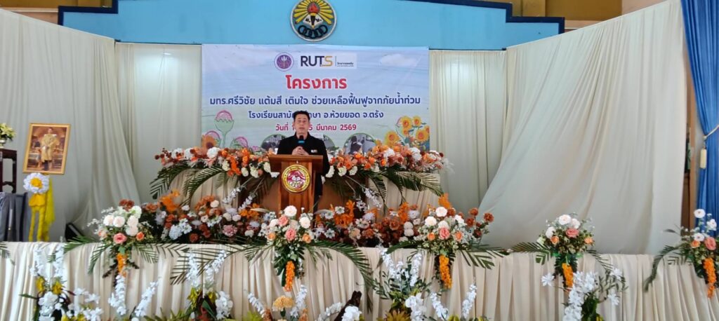 ในวันนี้ 14 มีนาคม 2569 มหาวิทยาลัยเทคโนโลยีราชมงคลศรีวิชัย วิทยาเขตตรัง จัดโครงการ “แต้มสี เติมใจ: ช่วยเหลือฟื้นฟูจากภัยน้ำท่วม” เพื่อช่วยเหลือและฟื้นฟูโรงเรียนที่ได้รับผลกระทบจากสถานการณ์น้ำท่วม