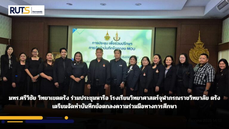 ข่าวประชาสัมพันธ์ มทร.ศรีวิชัย วิทยาเขตตรัง ร่วมประชุมหารือ โรงเรียนวิทยาศาสตร์จุฬาภรณราชวิทยาลัย ตรัง เตรียมจัดทำบันทึกข้อตกลงความร่วมมือทางการศึกษา24 ธันวาคม 202524 ธันวาคม 2025