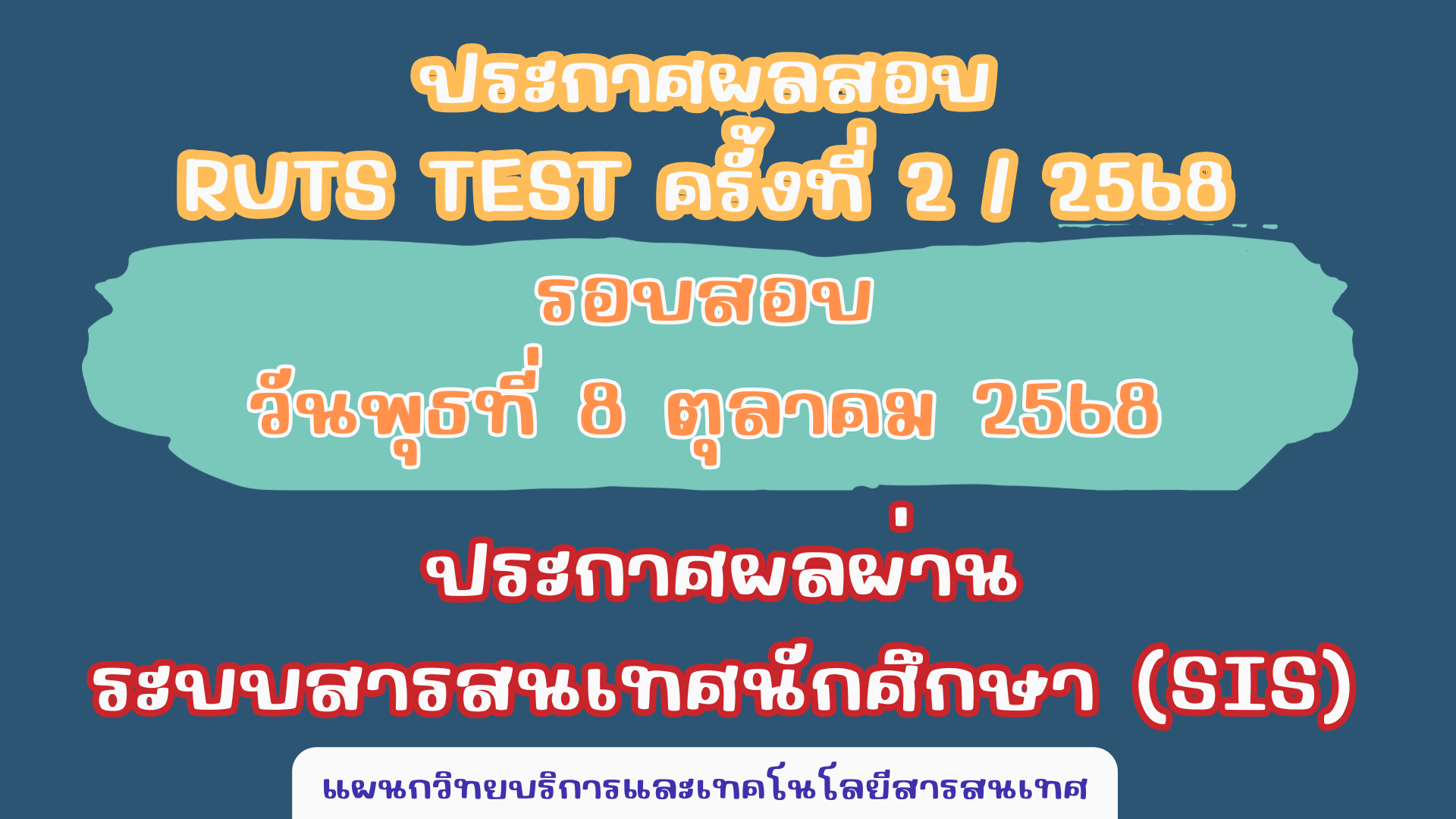 1. RUTS TEST คือเกณฑ์มาตรฐานความสามารถด้านภาษาอังกฤษของนักศึกษาระดับปริญญาตรีก่อน สำเร็จการศึกษา มีกำหนดการสอบ 4 ครั้ง ต่อปีการศึกษา (ตามปฏิทินที่แจ้งประกาศ)
